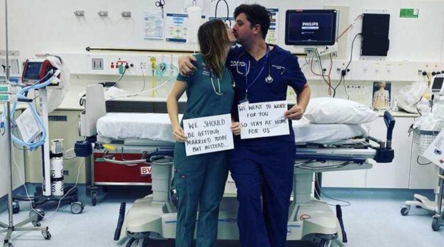 Ese día compartieron una fotografía en el hospital con el mensaje "Nosotros deberiamos estarnos casando pero estamos trabajando por ti. Quédate en casa por nosotros".