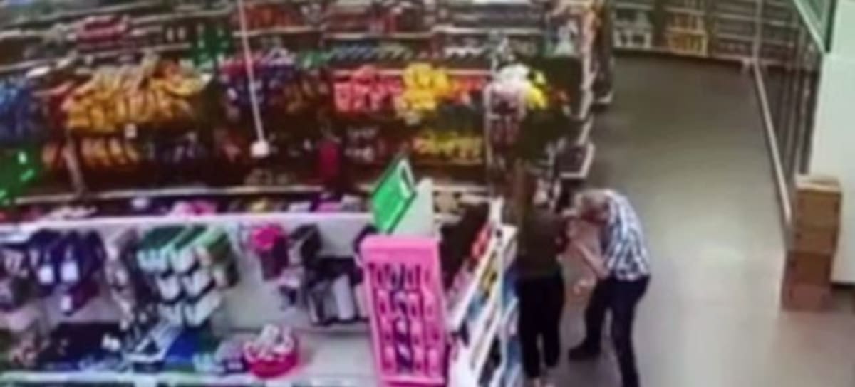 Hombre se limpia la nariz con ropa de una empleada de supermercado
