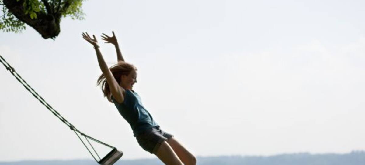 En el video se muestra a una chica que salta a un lago con un lazo, se aprecia como al momento de caer pareciera que por un momento levita en el aire.
