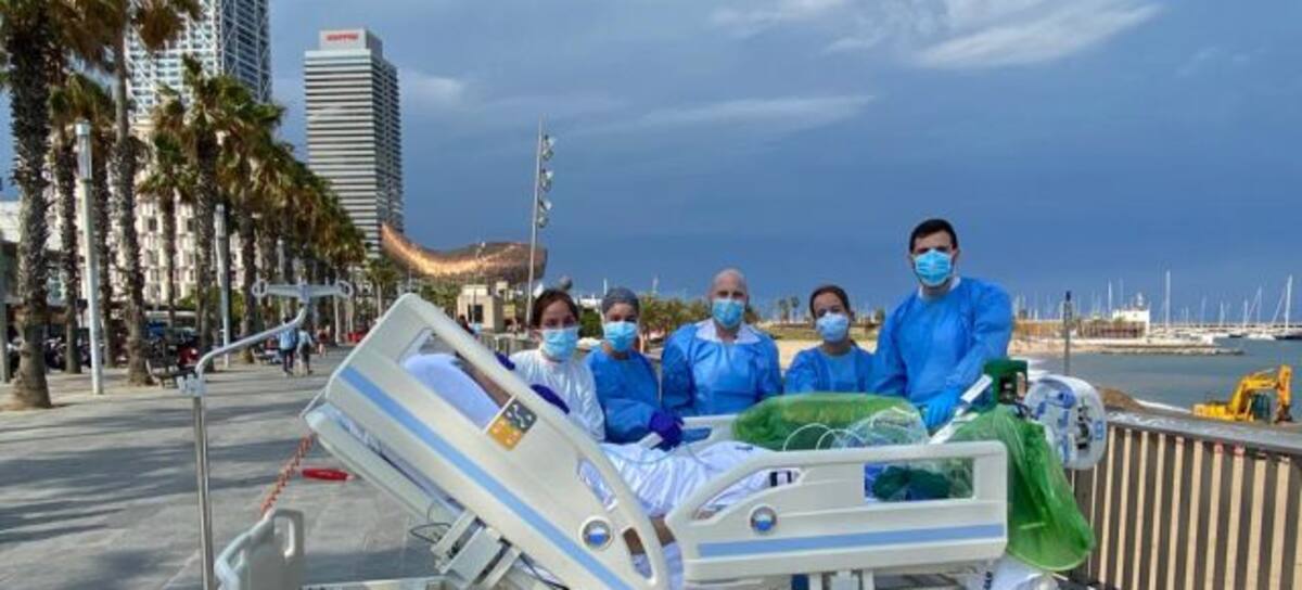 Los hechos ocurrieron en el Hospital del Mar, en Barcelona, España. Un abuelito llevaba dos meses tratando de recuperarse del coronavirus. Cuando lo hizo, pidió que lo llevaran a ver la playa.