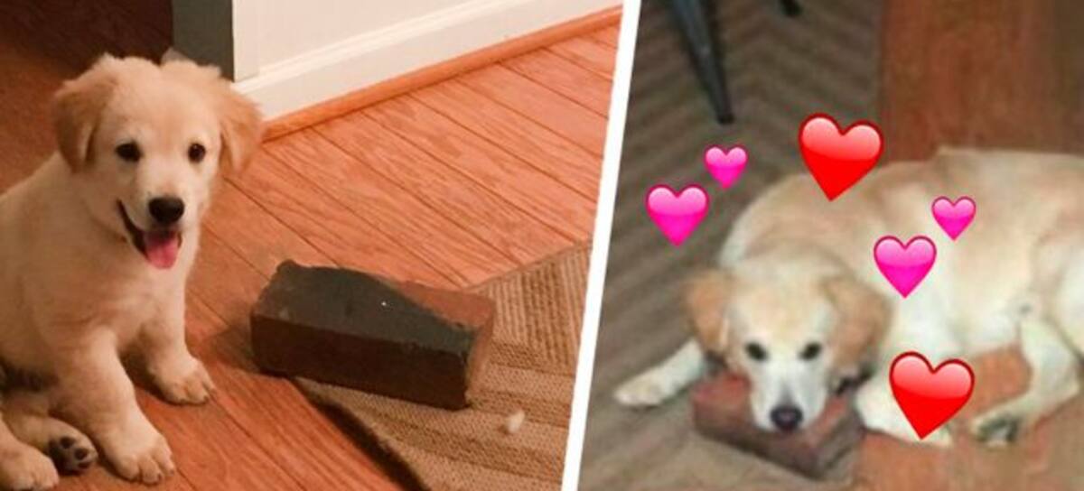 Perrito adoptado se hace mejor amigo de un ladrillo; son inseparables