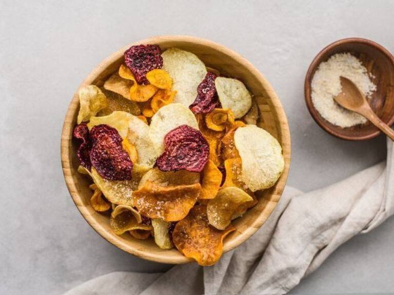 ¿Se te antojaron unas papitas? No te preocupes, no te sientas mal, ahora tu misma puedes hacerlas. ¡Sí!, unas chips de vegetales con un poco de sal y chilito y listo.
