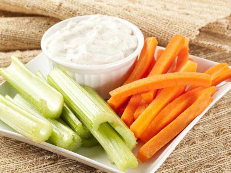 Los palitos de zanahoria y apio con aderezo nunca fallan, también puedes acompañarlos solo con lomón y un poco de chilito.