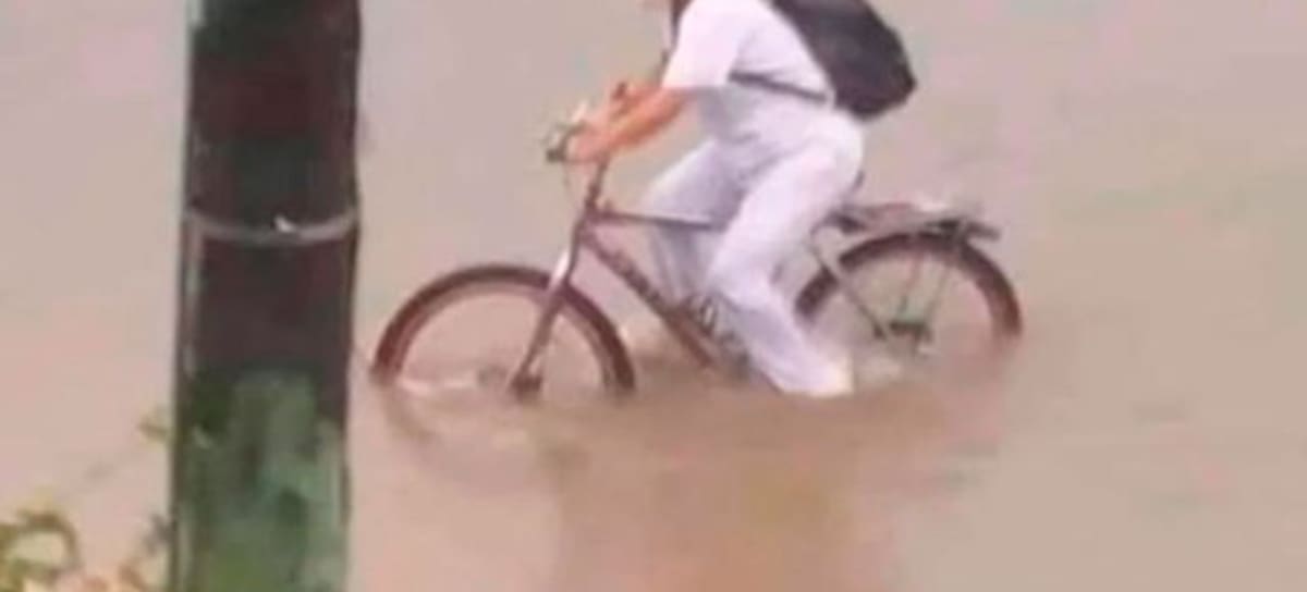 Enfermera cruza calles inundadas en bici al regresar del trabajo