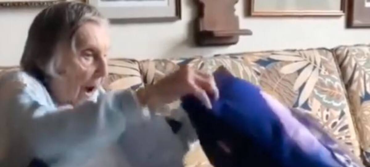 La veterana de 104 años de edad recibió una sorpresa por parte de sus hijas, un empaque que contenía una almohada con una imagen plasmada en ella, cuando ella se dio cuenta de la imagen que estaba en la almohada la reacción resultó por demás conmovedora, causando que a más de alguno se le salga alguna lagrimita.