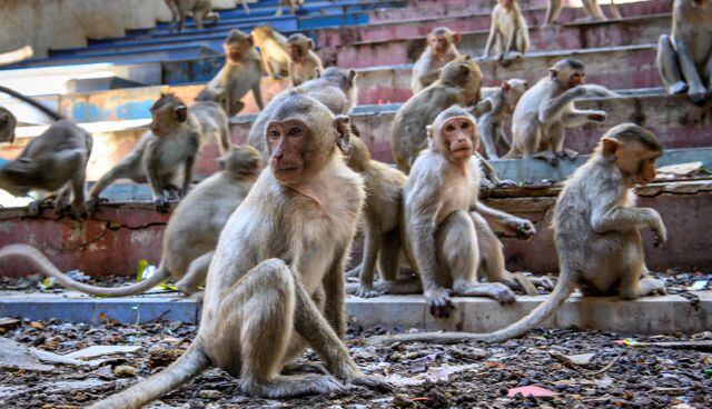 6000 monos invaden una ciudad en Tailandia
