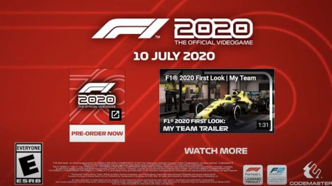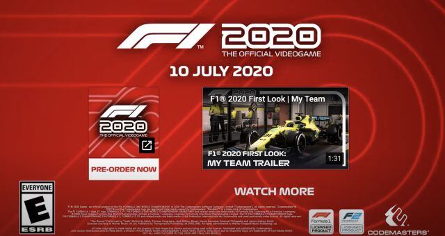 Estas y muchas más novedades esperan en F1 2020, el cual llegará al mercado el viernes 10 de julio de 2020 para PlayStation 4, Xbox One y Xbox One X, PC y Google Stadia.