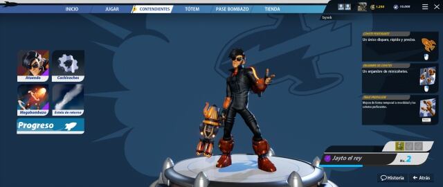 Con un cañón de mano, este pirata de los 7 mares es una de las mejores opciones para control de zona y combate de poco a medio alcance. Siendo el único personaje del juego que no tiene que recargar en ningún momento y que sus especiales son de alto daño; es una necesidad en modos de juego donde se tiene que capturar el área.