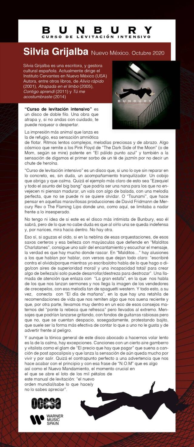 La escritora española Silvia Grijalba habla del nuevo álbum de Enrique Bunbury "Curso de levitación intensivo"