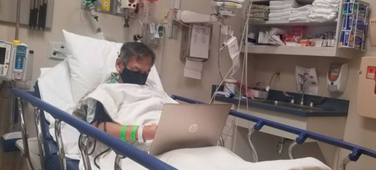 Sandra Venegas, una usuaria de Facebook, compartió en su cuenta una fotografía de su padre, encamillado en un hospital, trabajando en su computadora. Esto, a unos cuantos minutos de ser ingresado al quirófano para ser intervenido.