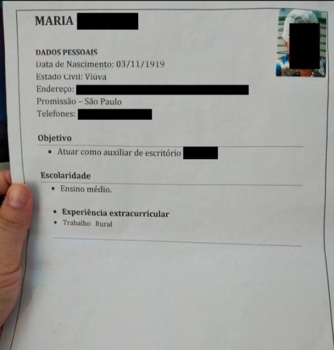 Pamela Gomes, de 32 años, y nieta de Maria trabaja como analista de administración personal en una empresa de Brasil, y compartió que los miembros de la familia decidieron hacer caso a la petición, en modo de broma, y entregar su currículum: