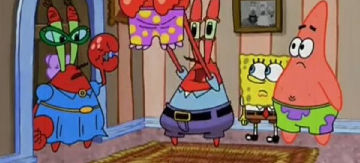 Don Cangrejo suena emocionado y él junto a Bob Esponja y Patricio, entran a una casa. Al encontrar el cajón de la ropa interior, la mamá de Don Cangrejo aparece, no sabían que habían entrado a su casa.