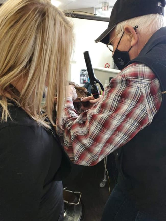 Abuelito toma clases para aprender a rizar el cabello de su esposa