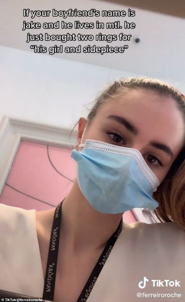Se trata de Eli, una joven que trabaja en una joyería de la ciudad de Montreal, en Canadá, y que hace algunas semanas compartió un video en el que contó que uno de sus clientes compró anillos para su pareja y amante. "Si el nombre de tu novio es Jake y vive en Montreal, acaba de comprar dos anillos, uno para su 'chica y otro para su accesorio'", expresó la joven.