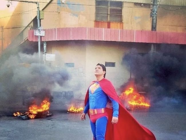 La imágenes surrealistas fueron captadas el pasado 30 de mayo en el municipio de Barra dos Coqueiros, en Brasil, cuando Luiz Ribeiro de Andrade, un comediante disfrazado de superhéroe fue inesperadamente atropellado por un autobús cuando intentaba detener con una mano el vehículo en movimiento.