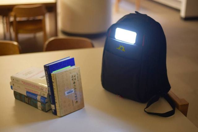 Durante el día, la mochila absorbe la luz solar, y dicha energía se almacena en un banco de baterías que emite luz ecológica y sostenible durante la noche. Llegado este momento, el estudiante puede usar la luz para estudiar y hacer su tarea por la noche.