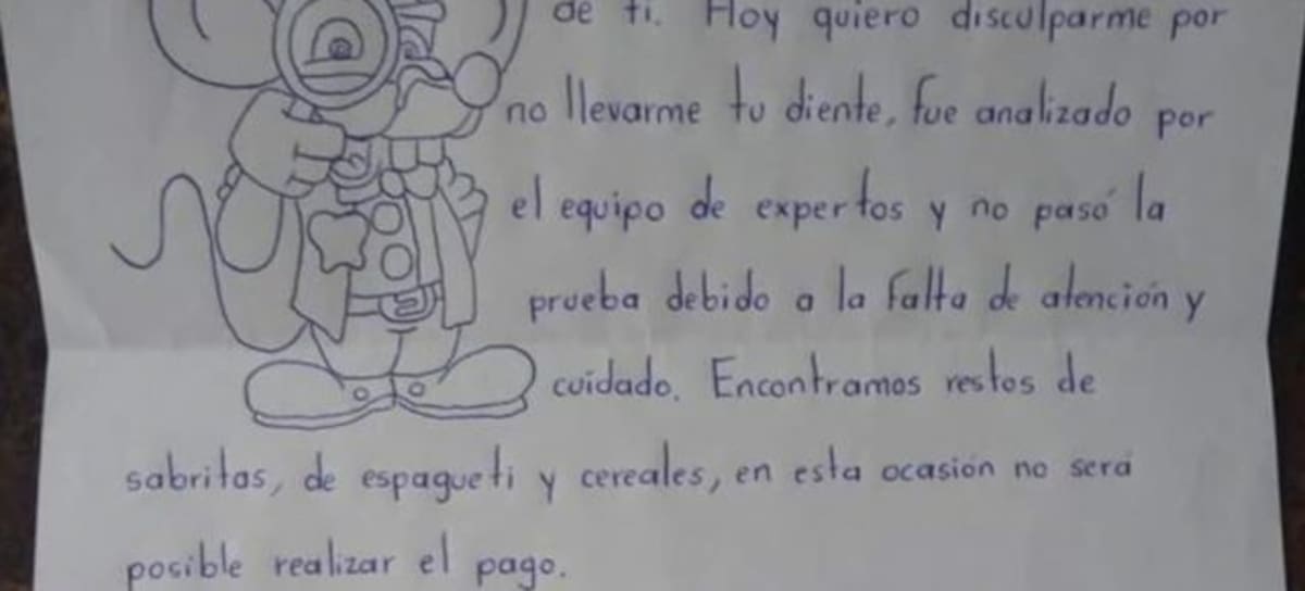 El ratón le dejó una carta para darle una lección al niño: "no se realizará el pago"