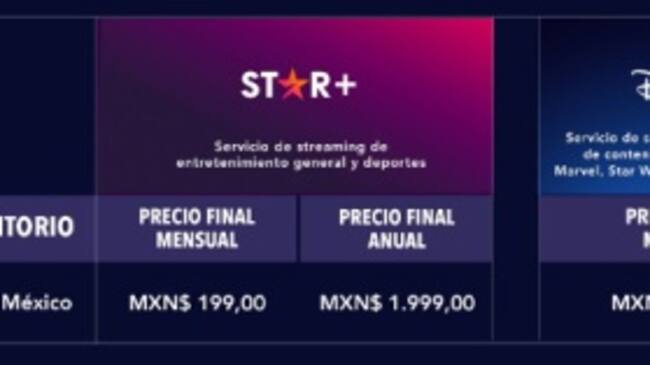 Los precios finales de la suscripción directa mensual y el valor final preferencial de la suscripción anual a Star+, así como el precio de la suscripción mensual a Combo+ y Disney+ (incluido a modo de referencia a fines comparativos) son: