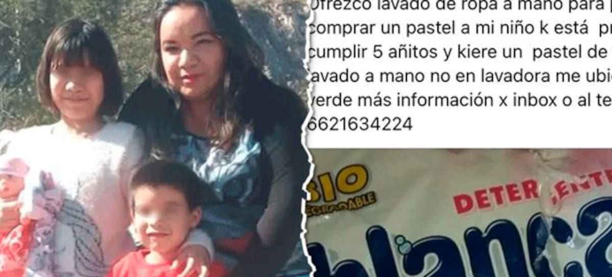 "Ofrezco lavado de ropa a mano para poder juntar y comprar un pastel a mi niño que está próximo a cumplir cinco añitos y quiere un pastel de fresa. Ojo, es lavado a mano, no en lavadora", dice el mensaje que incluía su ubicación, número telefónico y una foto de un detergente de ropa.