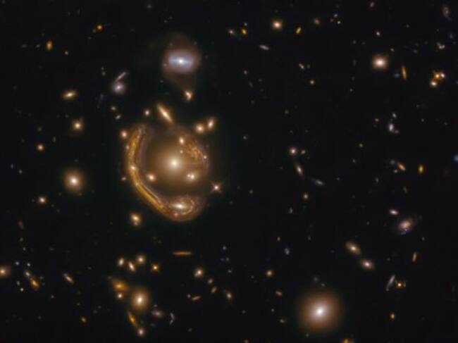 Como es bien sabido, Hubble proporciona imágenes absolutamente impresionantes, y esta en particular muestra un efecto de lente gravitacional que ofrece un ejemplo casi perfecto de un "anillo de Einstein". La imagen de este anillo, llamado GAL-CLUS-022058s, o el "Anillo Fundido", fue publicada por la Agencia Espacial Europea.