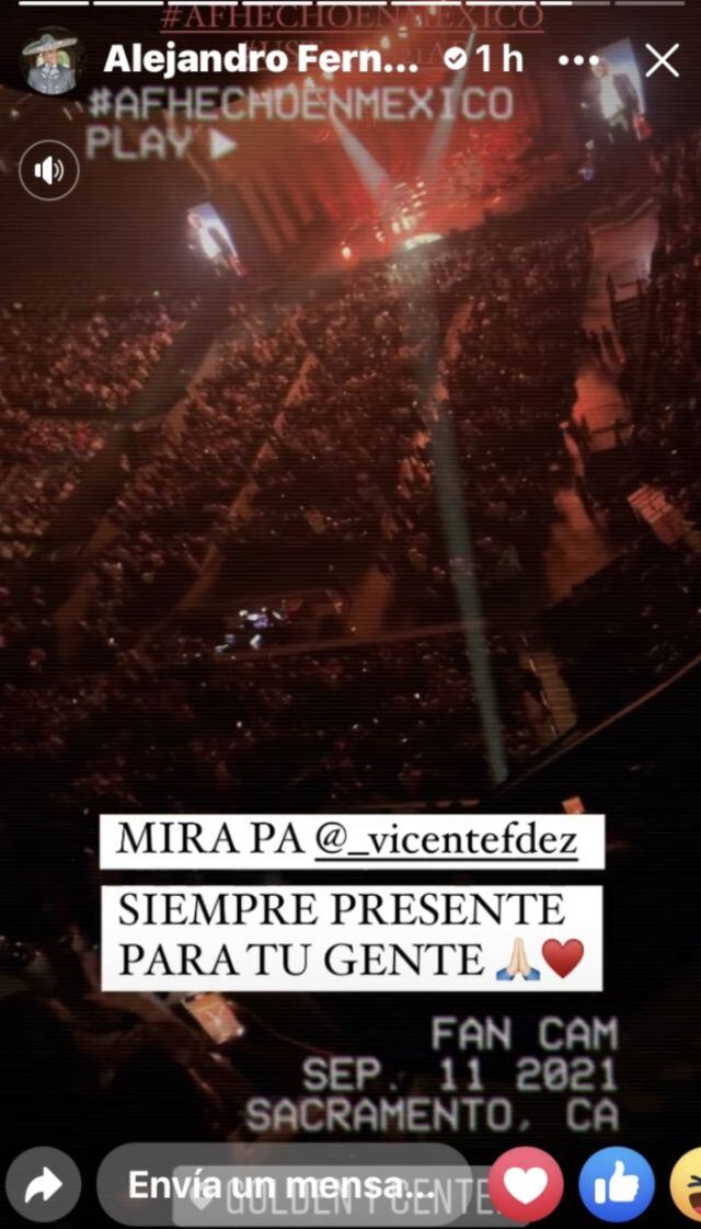Fue a través de sus historias de Instagram, que Alejandro compartió el momento en que los asistentes empezaron a gritar el nombre de su padre, y lo que llama la atención es que al escuchar la entonación se conmovió al punto de que se le salieron unas lágrimas.