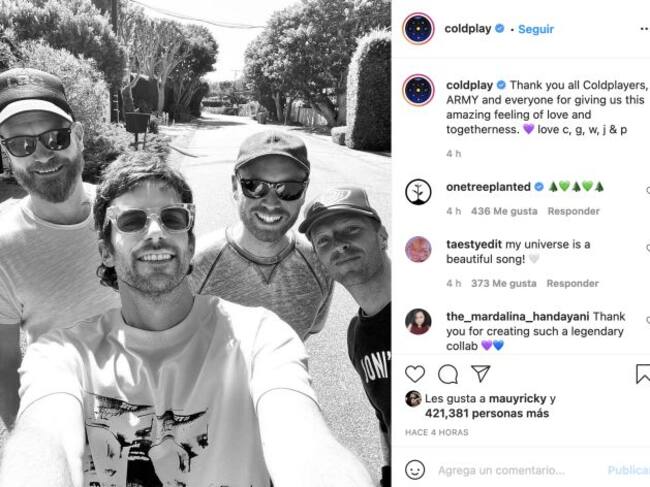 Fue a través de sus redes sociales que Coldplay anunció su segundo sencillo "My Universe", de su nuevo álbum que se llamará "Music Of The Spheres" y que se estrenará el próximo 15 de octubre.
