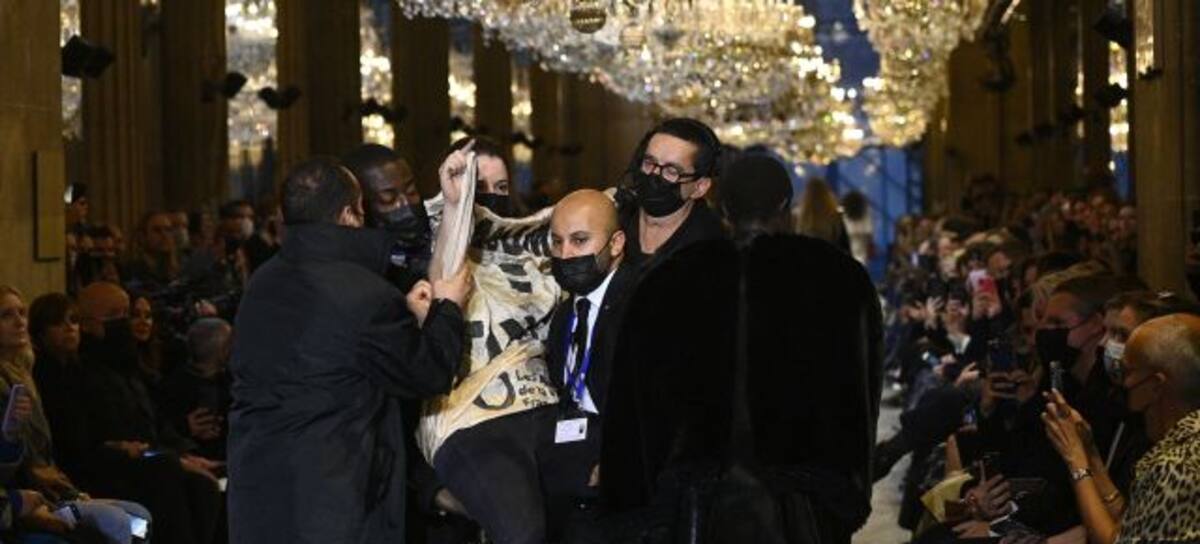 Videos y fotografías circulan en todo el mundo. Una joven activista interrumpió el desfile de moda de Louis Vuitton en la semana de la moda en París.
