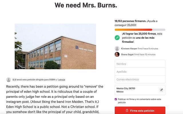 Sin embargo, los padres nunca imaginaron que los alumnos defenderían a su directora, creando otra petición a favor de mantener a Sharon Burns en su puesto. Esta iniciativa se llama “We need Mrs. Burns” y hasta el momento ha logrado recaudar 20.000 firmas.