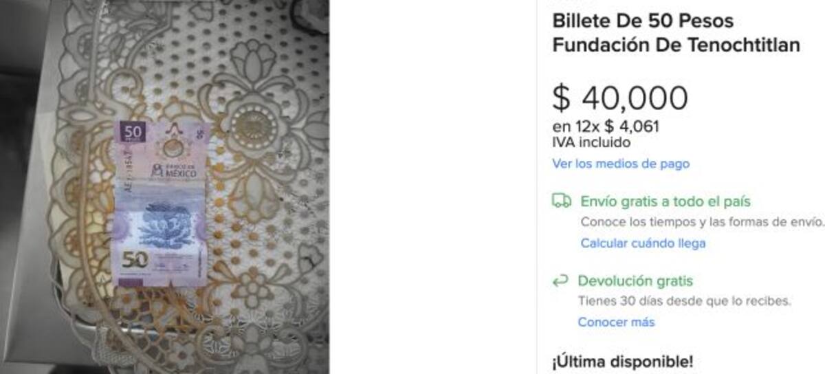 Billete de 50 pesos se vende hasta en 40 mil pesos