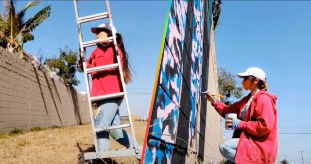 "Disfruté demasiado hacer este mural porque tiene todos los colores que me gustan, los colores del arcoíris, y pues así se ve...", se escucha decir a la fan.