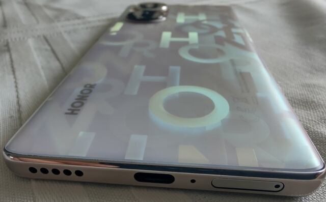 Cómo le mencionamos anteriormente el diseño de este equipo contrasta mucho contra su competencia. Usualmente este segmento cuenta con teléfonos muy rectos de pocas curvas y módulos de cámara lo más discreto posible. El Honor 50 se sale del molde utilizando una pantalla curva, un perfil extremadamente delgado y dos módulos de cámara que, en realidad, albergan cuatro cámaras y un flash. Por último, la parte trasera incluye un diseño exclusivo que hace alusión a la marca.
