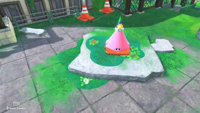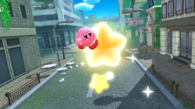 También, debemos de hablar de una de las nuevas habilidades de Kirby y es el de absorber grandes objetos, dando a Kirby otro pequeño grupo de habilidades. Aunque podrían quedarse como simples gimmicks que quedarán para The Forgotten Land, la creatividad de tomar algunos elementos cotidianos para transformar a Kirby son sin duda una manera interesante de darle más vida al personaje. Aquí, Kirby absorbe de forma distinta los objetos, cubriéndolos completamente con su cuerpo. Desde conos de tráfico, autos, máquinas expendedoras o hasta plataformas mecánicas, entre otros, Kirby puede tomar esta forma para desbloquear alguno de los secretos del nivel o avanzar a través de este. Son poderes absurdos, pero dentro de una franquicia como esta, se ven como un paso natural.