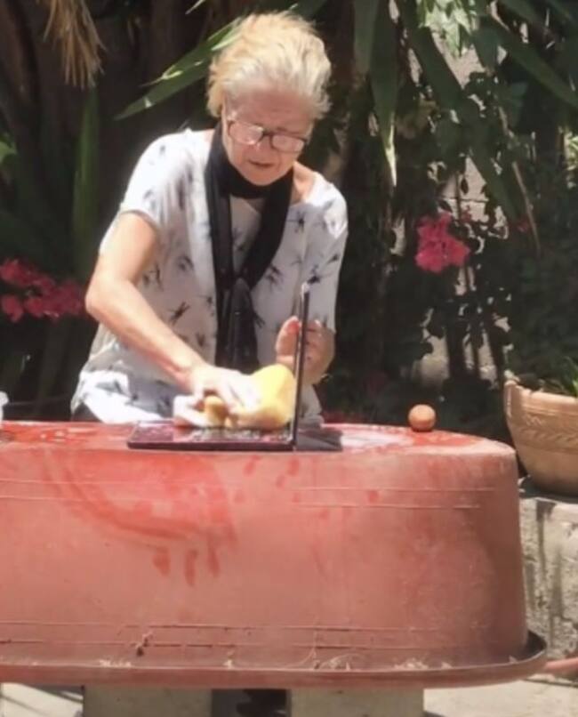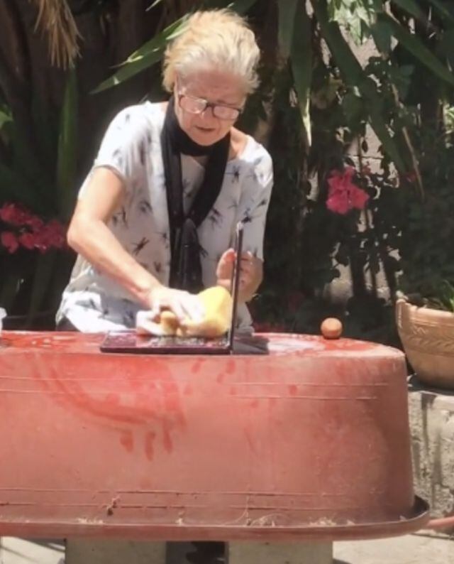 En el clip se observa a la mujer muy concentrada tallando la laptop con una esponja, para después sumergirla en agua y jabón para dejarla completamente limpia y así evitaro los virus en la superficie.