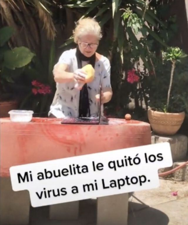 El hecho quedó documentado en un vídeo compartido a través de la plataforma de TikTok compartido por el usuario @aaronyeraa, quien documentó como su abuela quiso ayudarlo a dejar libre su computadora de cualquier virus, y mejor forma no se le pudo haber ocurrido.
