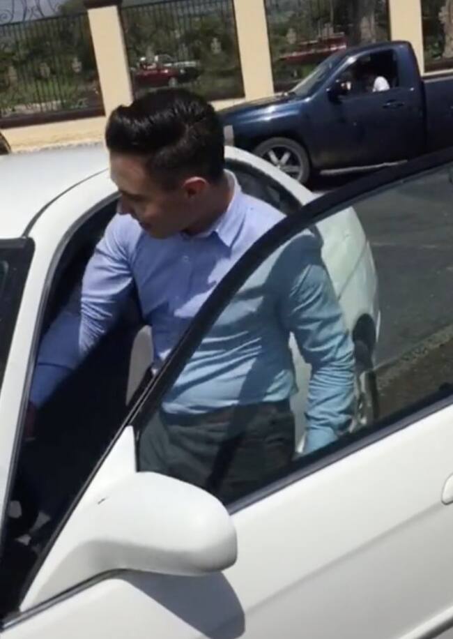 En el clip, el joven originario del estado de Michoacán se subió a su nuevo vehículo para estrenarlo, pero sólo pudo recorrer dos kilómetros, ya que provocó un choque con otro vehículo blanco: "Me regalaron el primer auto el día de mi graduación" se escucha en el video .