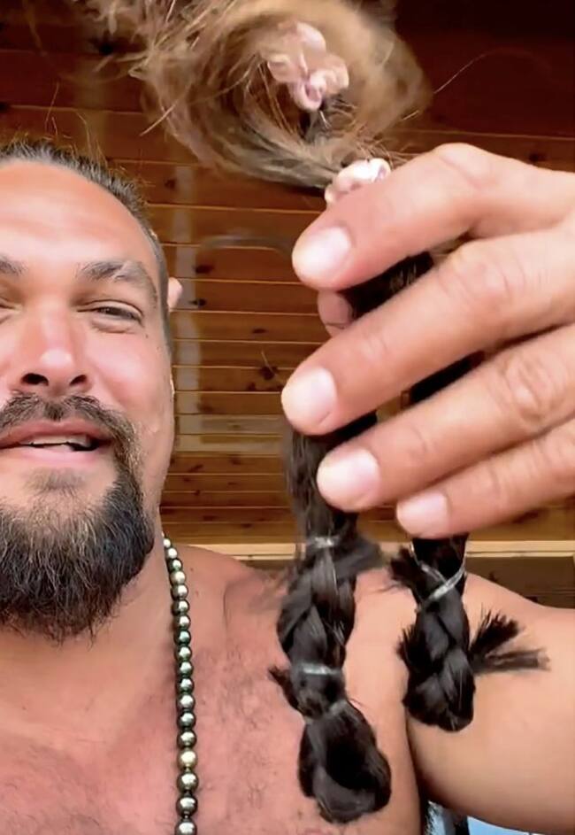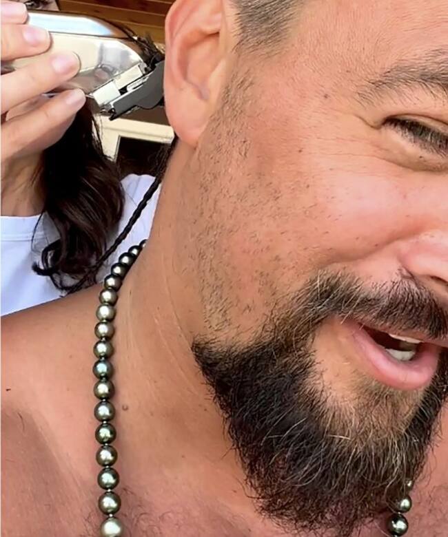 Momoa compartió un video donde rapa su característica cabellera