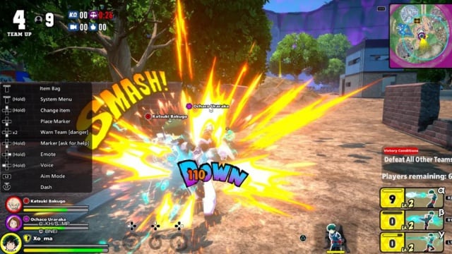 Como en cualquier Battle Royal, es absolutamente frustrante elegir un lugar que supones que será seguro saquear, solo para descubrir que otros 3 equipos también están allí, garantizando una pelea masiva. El trabajo en equipo es crucial y My Hero: Ultra Rumble tiene muchas formas para que los jugadores se comuniquen sin el uso del chat de voz.