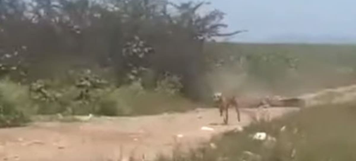 Afortunadamente en las imágenes se puede ver como el lomito escapa por pura suerte y corre en sentido contrario de donde venía.