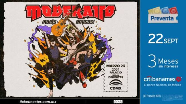 Este miércoles la compañía OCESA anunció en un comunicado de prensa que el show "Moderatto ¡Adiós Amigos!", se realizará en el Palacio de los Deportes de la Ciudad de México el próximo 23 de marzo de 2024.