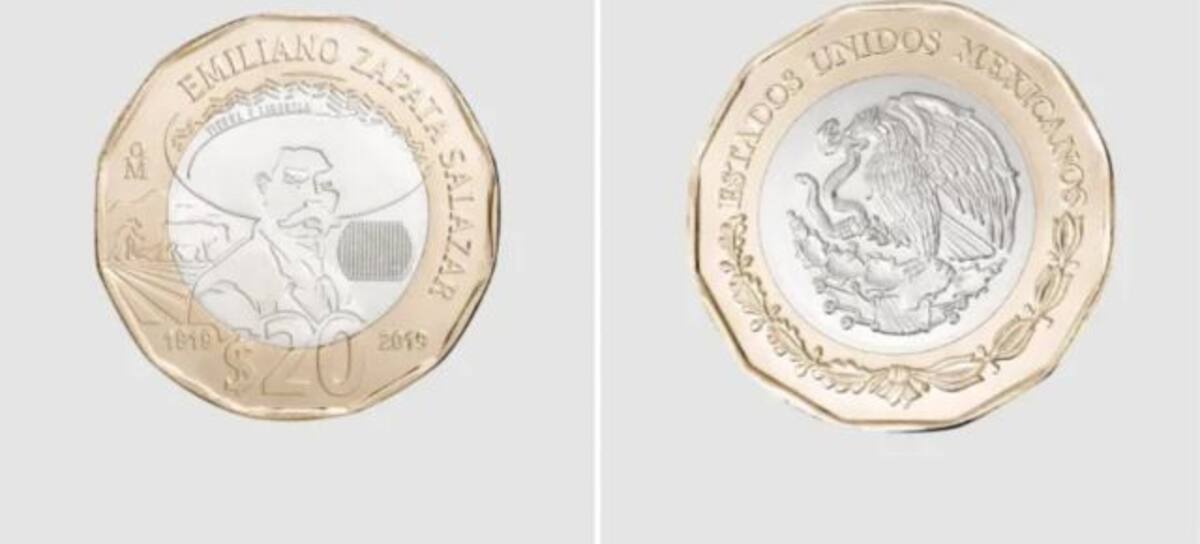 Cabe destacar que la moneda fue diseñada por Banxico en 2019 para conmemorar el centenario de la muerte del héroe de la Revolución. En el frente, aparece el retrato en relieve de Emiliano Zapata.