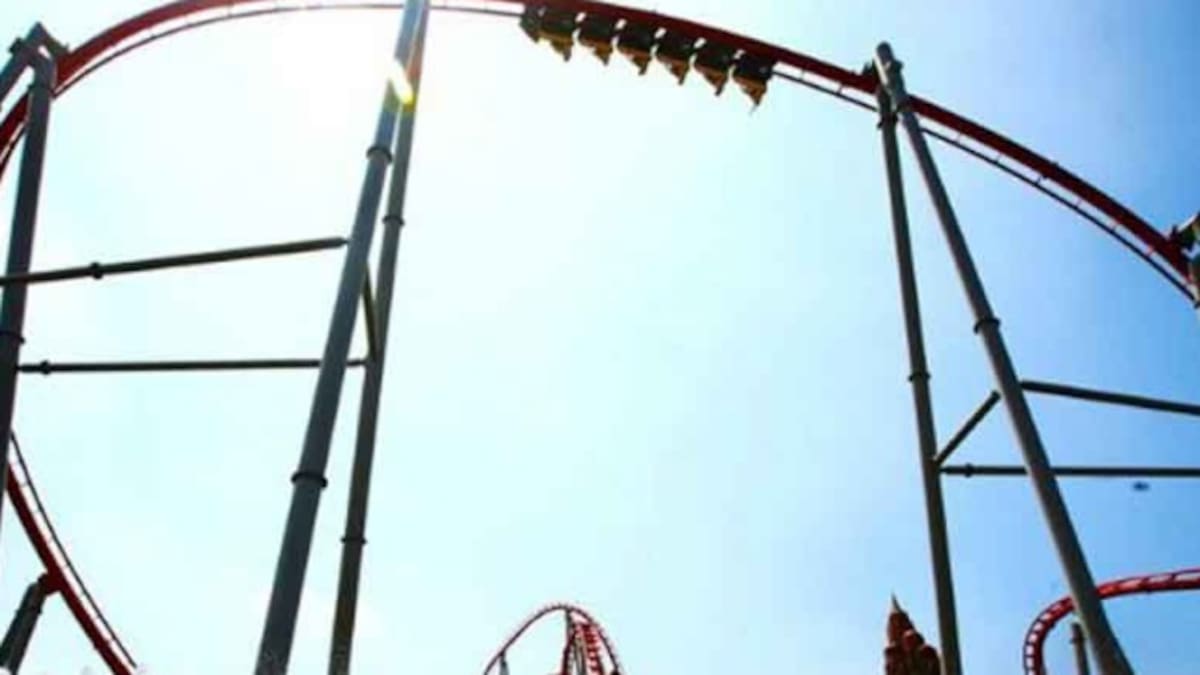 Un pájaro se para sobre un botón y detiene una montaña rusa