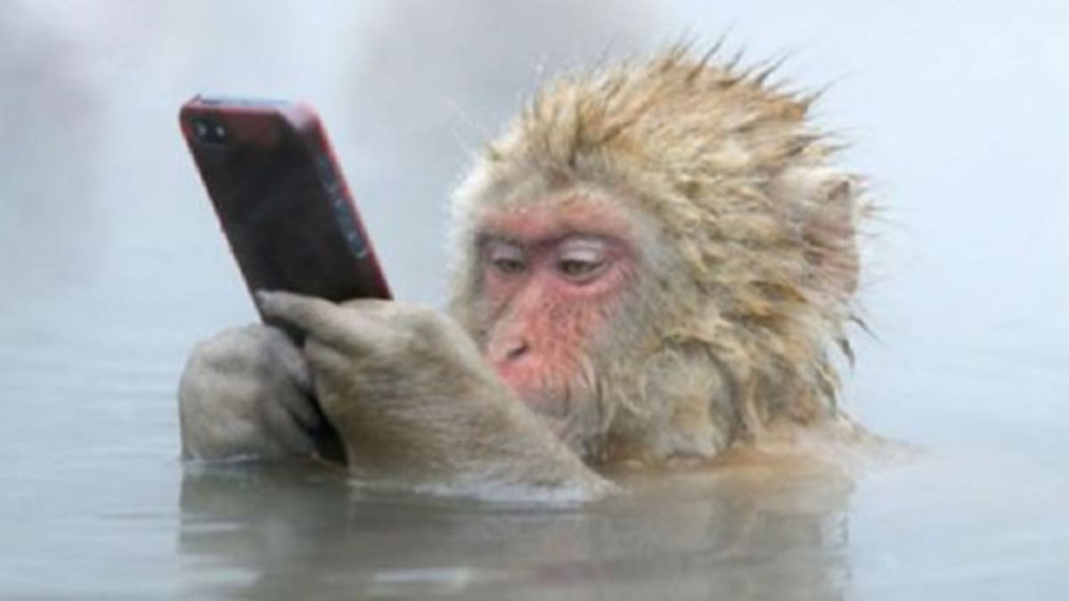 El video de un hábil mono que le arrebata el celular a una chica