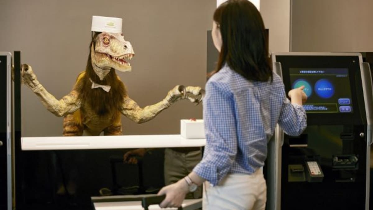 En la recepción de este hotel, los huéspedes son recibidos por un dinosaurio mecánico, una mujer androide y un robot recepcionista.