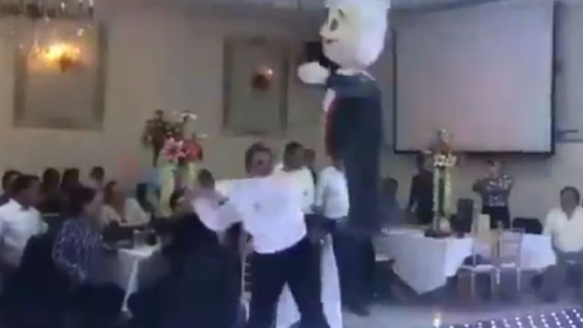 En redes sociales circula el video de cómo utilizaron la imagen de López Obrador como piñata