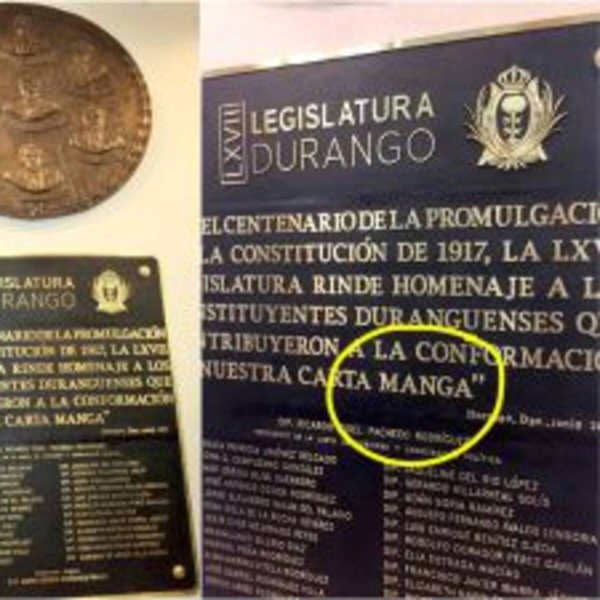 El congreso de Durango rindió homenaje a la "Carta Margna" pero en el momento de mostrar la placa, notaron un error