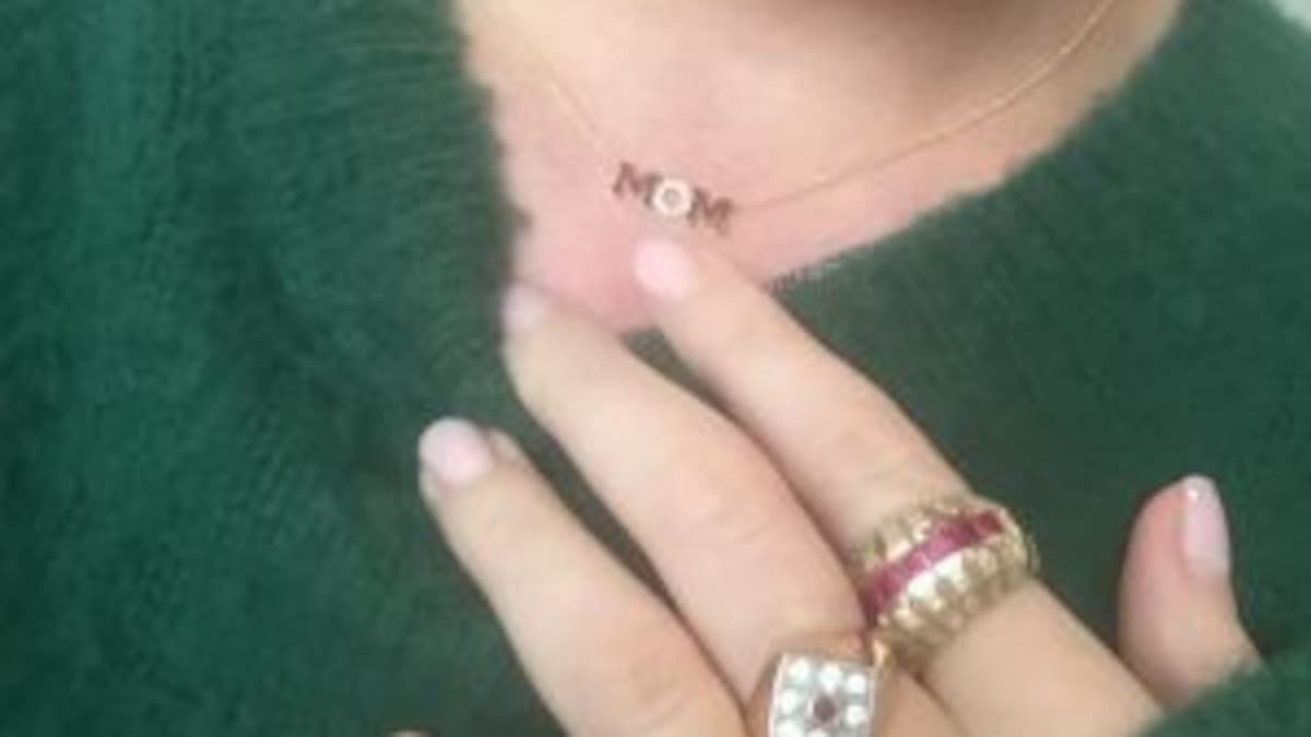 La cantante publicó una fotografía usando un dije con la palabra "mamá"