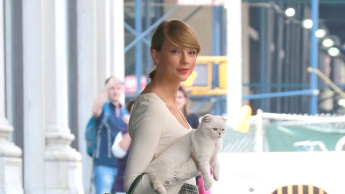 ¡El gato de Taylor Swift rasguña sus piernas de 40 millones!