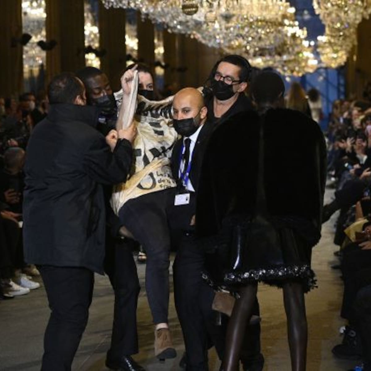 Fue en la semana de la Moda en París cuando una mujer en contra del consumo excesivo se manifestó en la pasarela de una de las marcas más importantes del mundo