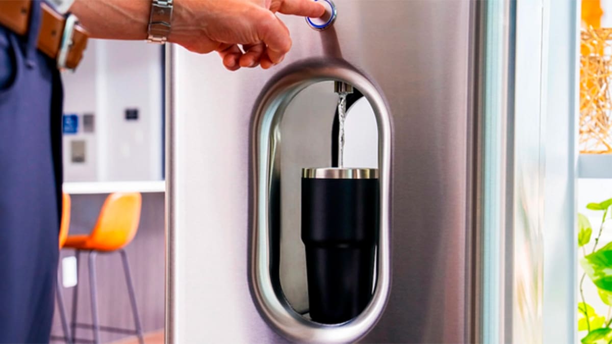 Este dispensador inteligente transforma la humedad ambiental en agua alcalina para eliminar el uso de plásticos en el hogar