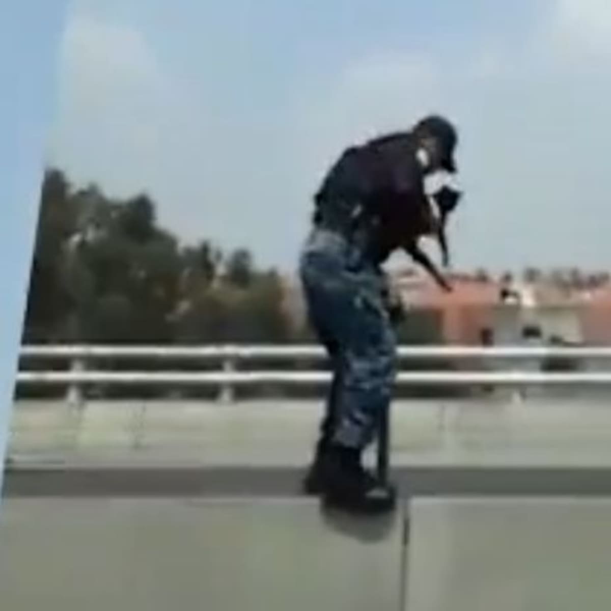 Policía rescata a gatito atrapado en el periférico en CDMX
